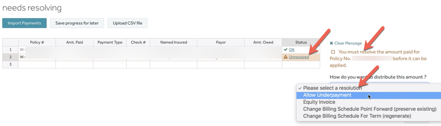 - Select Allow Underpayment
