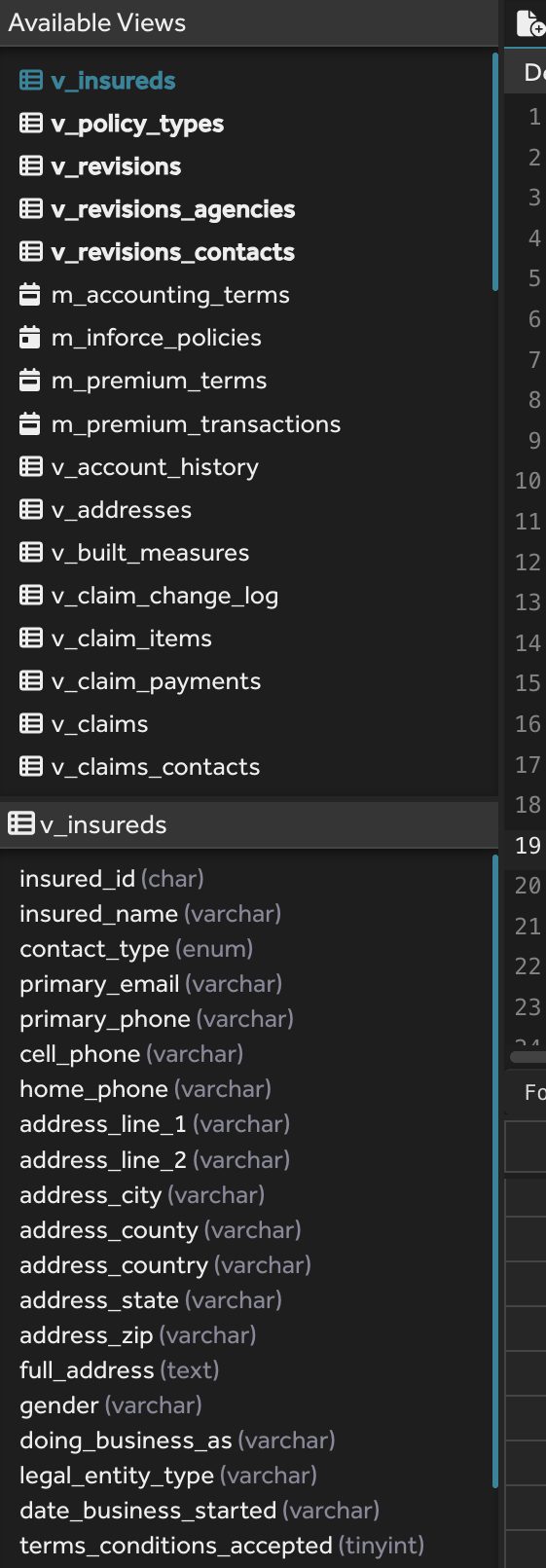 The left sidebar is your view discovery and field inspection workspace. Expert users should treat this as a fast schema browser: it helps you confirm naming, identify likely join keys, and avoid unnecessary trial-and-error in the main editor.