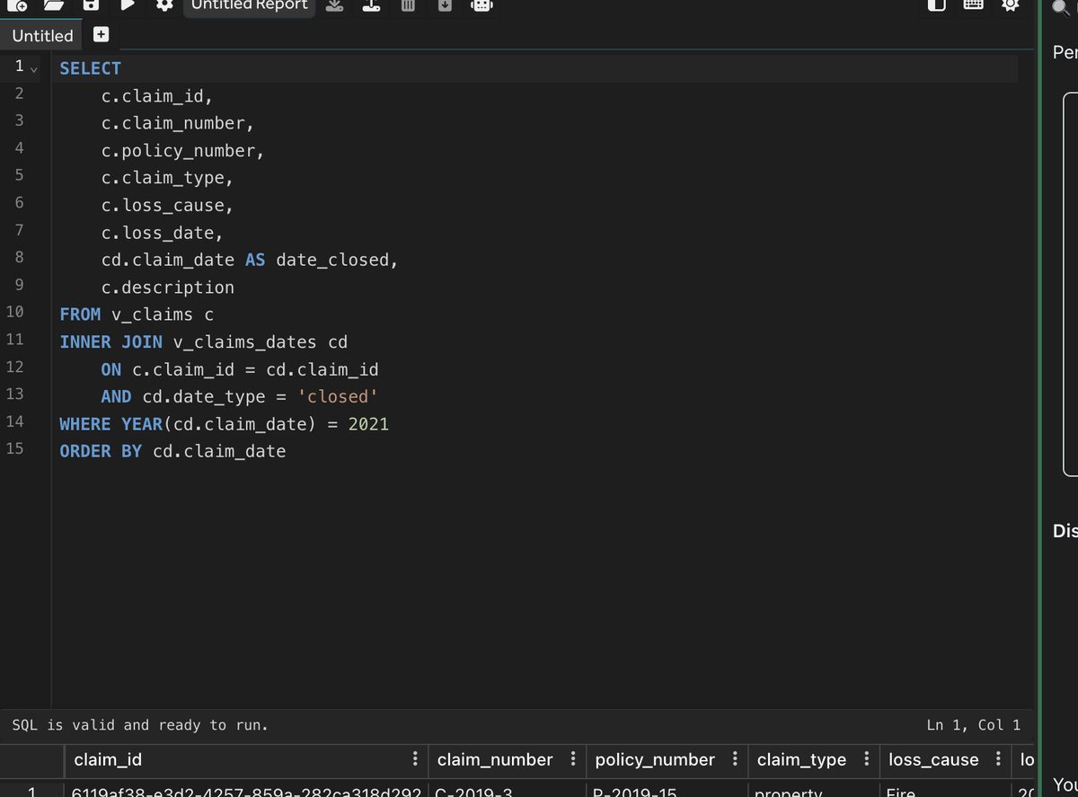 The editor is where final report logic is authored. Syntax highlighting and autocomplete speed up creation, but maintainability still depends on disciplined SQL structure, such as CTEs, explicit aliases, and typed parameters.