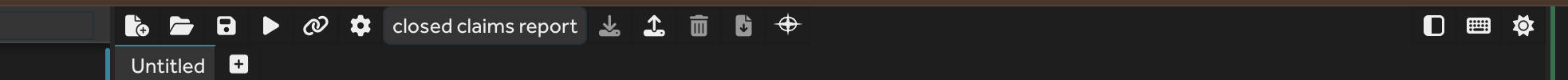 From left to right, the tool bar enables, new report, open existing report, save report, interactive run, create json link, settings, edit the report name, export report json, import report json, delete report, build and run report, and invoke report copilot.