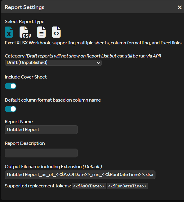 Publish only after validation so the report appears in Report List for authorized users with stable, documented behavior. After publishing, users run the report from the standard report list with the same execution context and limits used in normal operation. To publish, select Settings, then change Unpublished to Published.