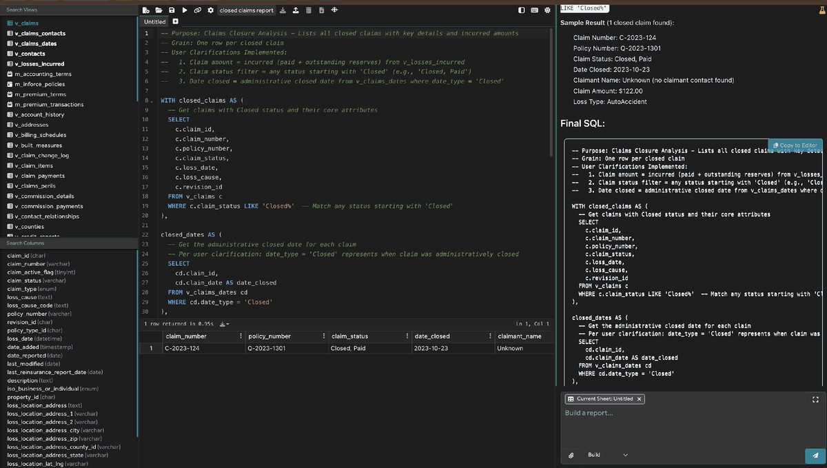 - Report Builder Mode: For users who want to create reports with AI and bypass the use of SQL Entirely.