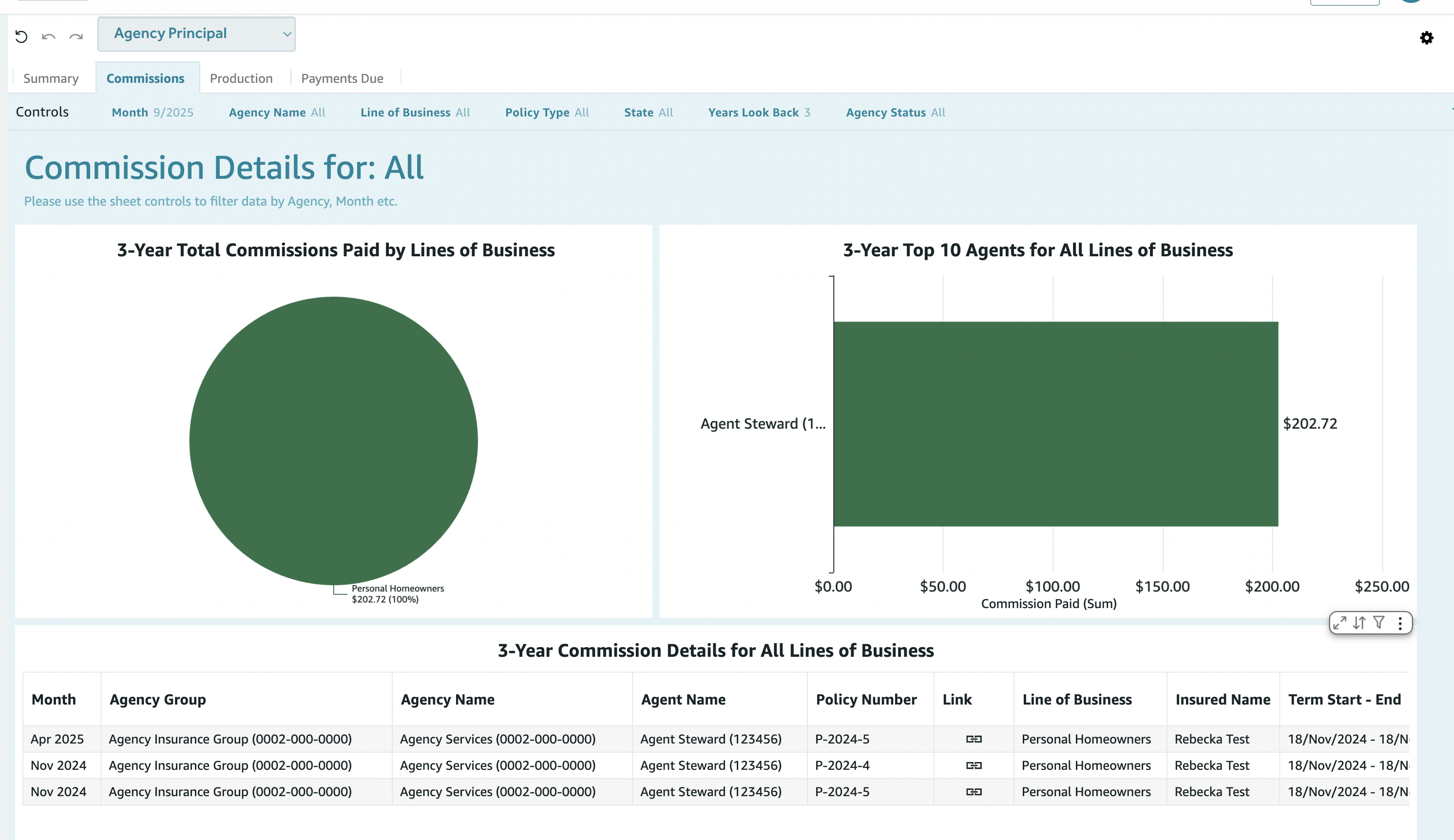 Why it matters (Agency Principal): Recognize top producers and spot who needs support, so compensation and coaching are fair and data-driven. - 3-Year Commission Details for All Lines of Business