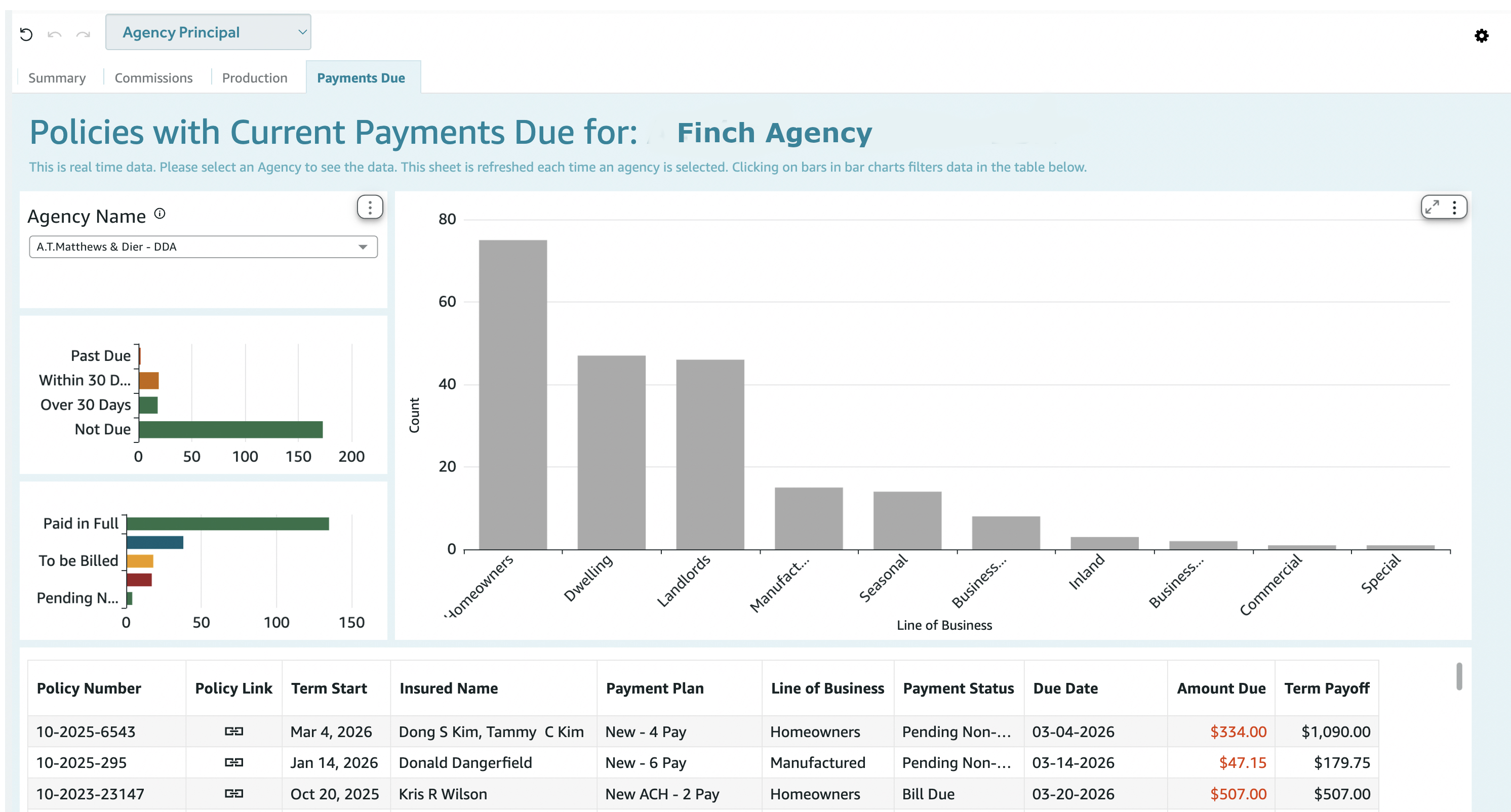Why it matters (Agency Principal): See which lines drive your payments-due exposure, so you can focus collection efforts where the money is.