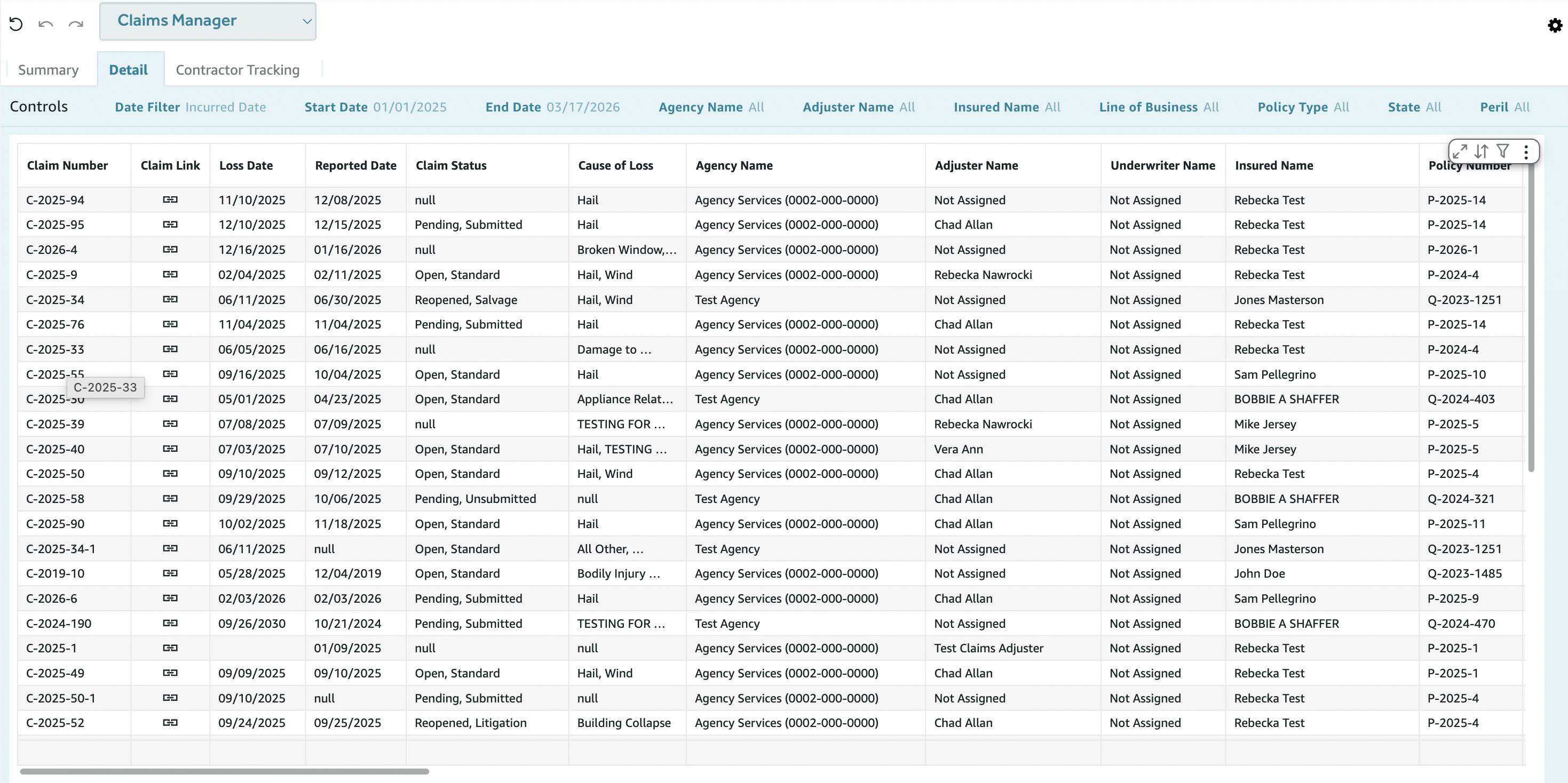| Claim Number | Unique claim identifier (e.g. C-2025-94). |