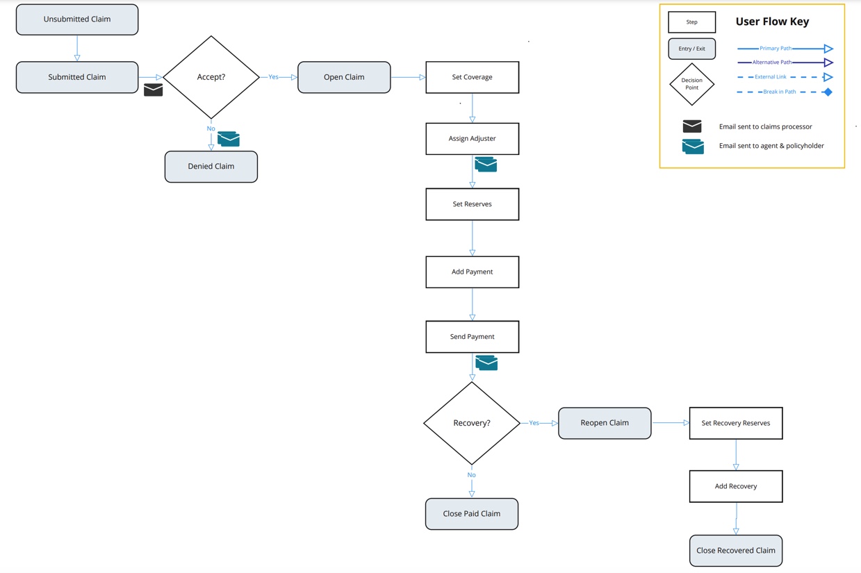 The diagram below illustrates a typical claim lifecycle. Payment-related notifications are listed under Billing.